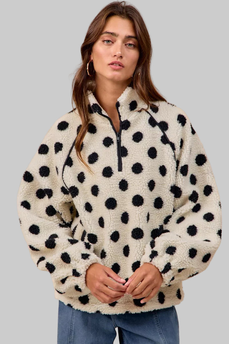 Megan Polka Dot Sherpa Half Zip Up Top