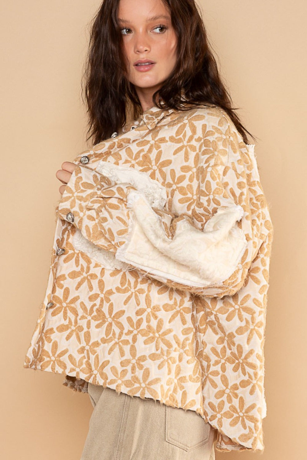Bohemian Floral Pattern Jacquard Shacket with Chest Pocket