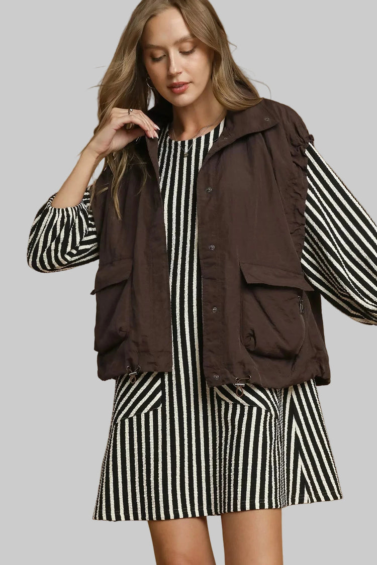 Larsa Chocolate Utility Nylon Vest with Pockets